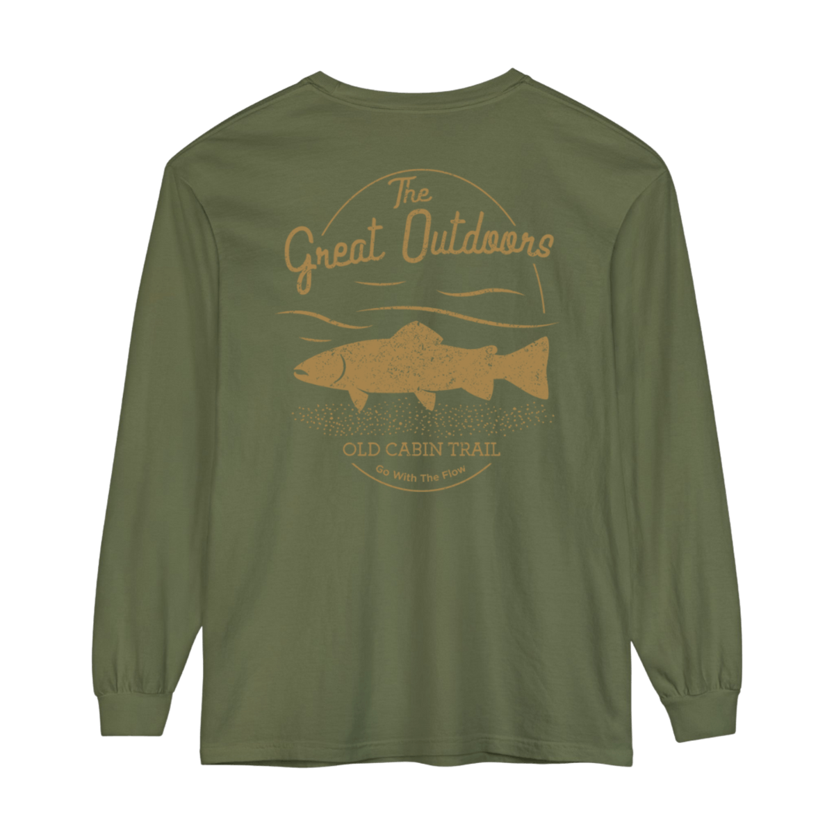 Our Old Cabin Trail Go With The Flow T-Shirt, printed on a 6014 Comfort Colors tee.